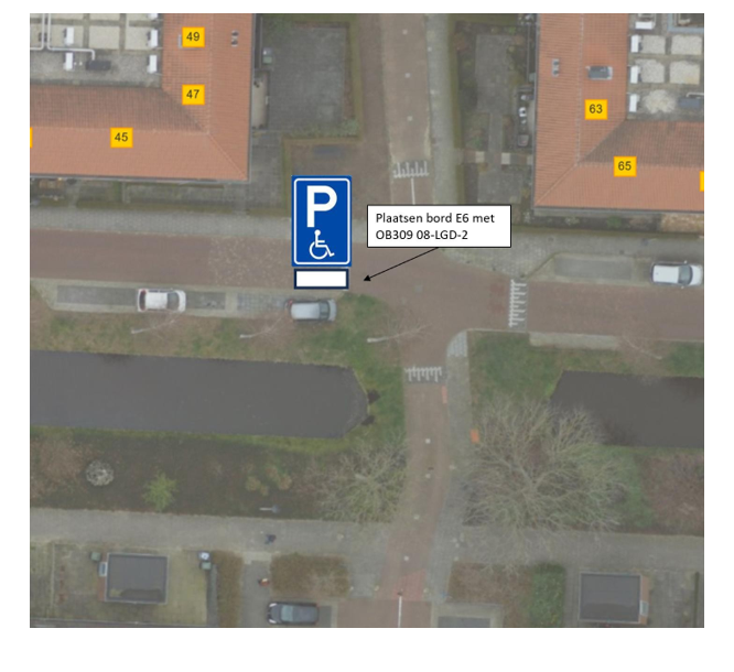Afbeelding van de locatie van de gehandicaptenparkeerplaats.